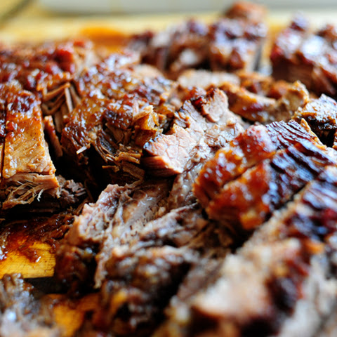 Lipton onion soup mix, beef brisket, heinz chili sauce, water.